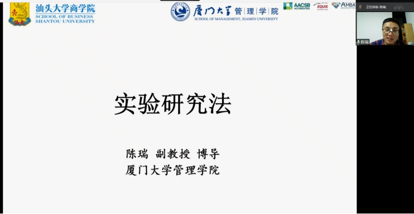 2021年12月1日晚上19:30,由SJB世俱杯官方网站企业管理系举办的学术讲座(第155期)暨国家自然科学基金申报交流第二期专题讲座以线上腾讯会议方式顺利举行。本次讲座邀请了厦门大学管理学院市场学系陈瑞副教授做了有关“实验研究设计方法及其在管理学研究中的运用”以及“国家自然科学基金申报交流”两个专题的学术分享,SJB世俱杯官方网站郭功星老师主持讲座,SJB世俱杯官方网站卜祥智老师、宋丽红老师、蔡创能老师、黄智淋老师、朴小锐老师、法学院李松老师以及其他校内外师生共计三十多人参与交流。